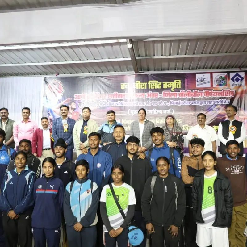 भिलाई नगर 25 दिसंबर 2025:- वॉलीबॉल कॉम्पलेक्स, पंत स्टेडियम सेक्टर-1, भिलाई, में दुर्ग कॉरपोरेशन वॉलीबॉल एसोसिएशन, एस.सी. एंड सी.ए. एवं भिलाई इस्पात संयंत्र के संयुक्त तत्वावधान में स्वर्गीय बीरा सिंह जी की स्मृति में आयोजित “20 वीं सीनियर छत्तीसगढ़ राज्य अंतर-जिला वॉलीबॉल चैंपियनशिप (पुरुष एवं महिला वर्ग)” के उद्घाटन समारोह  संपन्न हुआ।