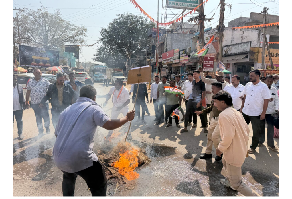 गरियाबंद। जिले में स्वीकृत सैनिक स्कूल को जिला मुख्यालय से बाहर ले जाने के निर्णय को लेकर सियासी घमासान तेज हो गया है। इस फैसले से आक्रोशित कांग्रेसी नेताओं और कार्यकर्ताओं ने बुधवार को तिरंगा चौक पर जोरदार प्रदर्शन करते हुए जिला शिक्षा अधिकारी (डीईओ) का पुतला दहन किया और जमकर नारेबाजी की।